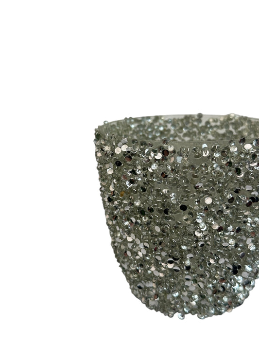 Γυάλινο κασπώ ασημί strass egg 9*8.5