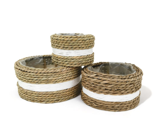 Καλάθι κασπώ ψάθινο λευκό - μπεζ 27*13