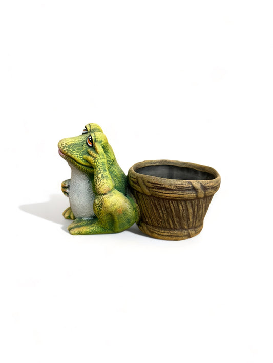 Κεραμικά ζωάκια κήπου βάτραχος με κοφίνι 19*13 Φ10