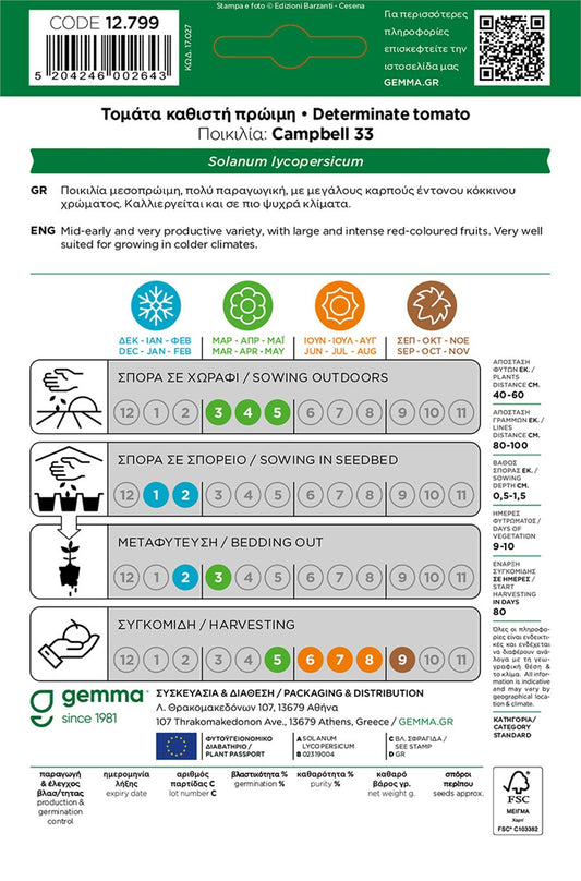 Τομάτα Καθιστή Πρώιμη Campbell 33